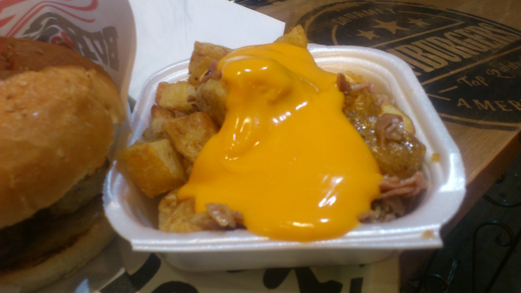 Ήμασταν 4 άτομα και επιλέξαμε 2 κλασσικά, 1 burger κοτόπουλου και 1 blue chees burger, ενώ στο κέντρο είχαμε μία μερίδα πατάτες με τσένταρ μπέικον (είμαι σίγουρος ότι πεινάτε ήδη, εγώ ξαναγουργούρισα). Το προσωπικό αρκετά γρήγορο και ευγενικό, rock μουσική σε όλο το μαγαζί, αφίσες απο rock ήρωες και άτομα όλων των γούστων απλά να μασουλάνε κάνοντας «μμμμ» (όσο και να ακούγεται υπερβολικό, θα το κάνετε κι εσείς όταν το δοκιμάσετε). Όσο για την τιμή, σκεφτείτε όλα αυτά να τα παραγγέλνατε σε κάποιο burgerάδικο και να σας έλεγαν ότι χρωστάτε μόνο 11.80… Για όλα! Το ξέρω ψηθήκατε, πότε θα πάτε;