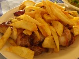 Μπορεί να σας έχουμε συνηθίσει με εξορμήσεις στα μεζεδοπωλεία της Αθήνας, αλλά είναι καλοκαίρι και θα πάμε και το μπάνιο μας, οπότε καλό είναι να ξέρετε πού να φάτε εκεί έξω. Αυτή τη φορά το μπανάκι μας βρήκε στο Πόρτο Γερμενό, περίπου 70χλμ έξω απο την Αθήνα. Όσοι δεν το ξέρουν πρέπει να το επισκεφτούν, παραμένει απο τις ομορφιές της Αττικής.Ο Μάκης, γνωστός στην περιοχή συστήνεται ανεπιφύλακτα για την ποιότητα του φαγητού του, την ποσότητα αλλά και τις τιμές του (θα καταλάβετε σε λίγο). Επιλέξαμε προηγούμενες επιλογές για να σας δείξουμε αυτά που ήδη ξέρουμε και αγαπάμε. Παραγγείλαμε χοιρινή μπριζόλα (η οποία είναι 1,5-2 φορές μεγαλύτερη απο αυτές που θα βρείτε και μάλιστα μόνο με 6,5€), κοτόπουλο στη σχάρα, χωριάτικη σαλάτα και μπύρες.