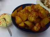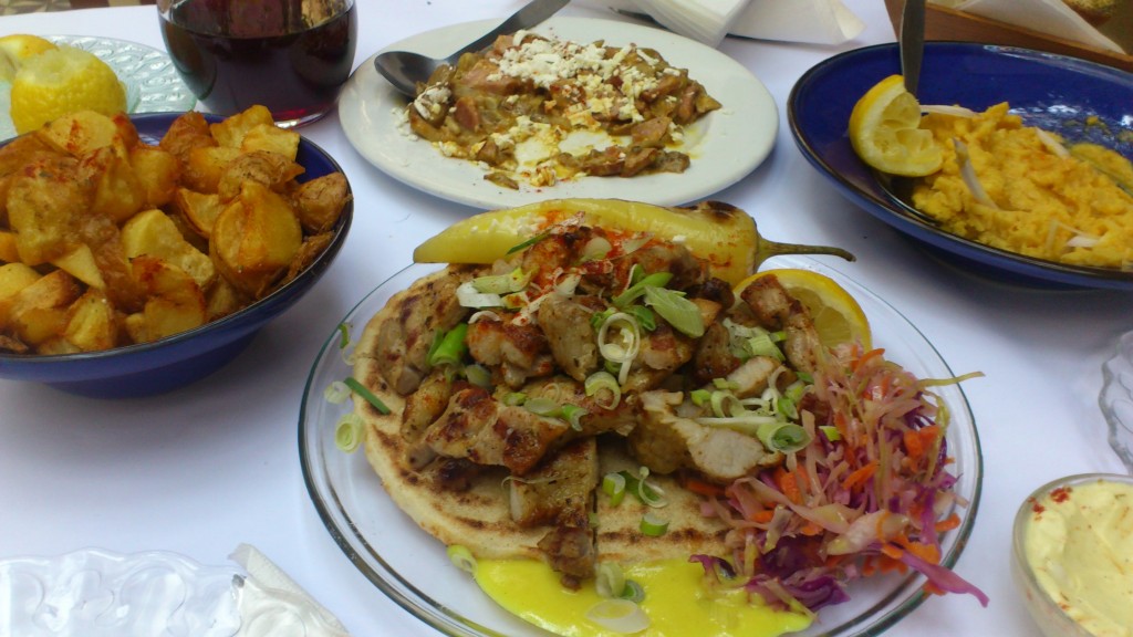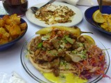 Είπαμε να δοκιμάσουμε αρκετά αυτή τη φορά (οπότε μην σας φανεί φουσκωμένος ο λογαριασμός). Έτσι ξεκινήσαμε με φάβα, πατάτες τηγανιτές (τις οποιες πρώτα βράζουν και γίνονται απίστευτες) με δική τους σως, ένα απιστευτο πιάτο με απάκι-μανιτάρια πλευρώτους και ξυνομυζήθρα και για κυρίως (οκ το παρακάναμε) διαλέξαμε πανσετούλες χοιρινές με πιτούλα. Το τελευταίο πιάτο πέρα απο οτι είναι νοστιμότατο όπως τα άλλα, έχει και μία γεμιστή πιπεριά μέσα. Όλα αυτά τα συνοδεύσαμε με 750ml ημίγλυκο κρασάκι. Να προσθέσω ότι στην αρχή έρχονται ψωμάκια με λαδορίγανη.