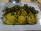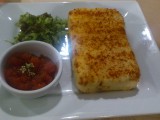 Επιλέξαμε τηγανιτή φέτα με μαρμελάδα ντομάτας, πιάτο που αποκλείεται να αφήσετε ανεκμετάλλευτο, φάβα με κάππαρη μεγάλης ποσότητας, πατάτες τηγανιτές με παρμεζάνα νοστιμότατες και επίσης σε μεγάλη ποσότητα και για κυρίως κοτομπουκιές με ρύζι το οποίο παίρνει άριστα απο εμφάνιση (όπως θα δείτε στην φωτογραφία έχει δημιουργηθεί σε φορμάκι που δίνει εκείνη τη gourmet εμφάνιση). Τα παραπάνω τα συνδυάσαμε με 750ml κρασί και 1 κοκακόλα.